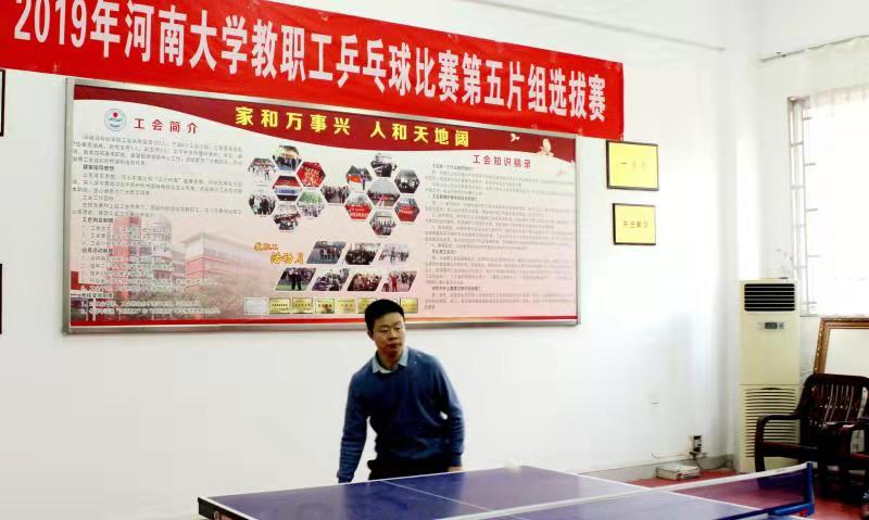 承办的河南大学2019年教职工乒乓球比赛第五片组选拔赛顺利举行。