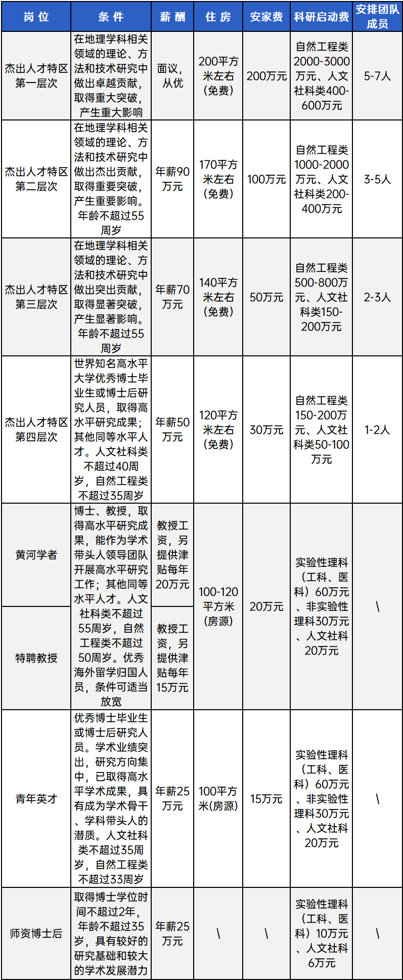 根据《河南大学杰出人才特区支持计划》《河南大学黄河学者和特聘教授岗位设置及聘任管理办法》《河南大学“青年英才计划”暂行管理办法》等,诚聘高层次人才、师资博士后研究员。岗位要求和基本待遇如下: