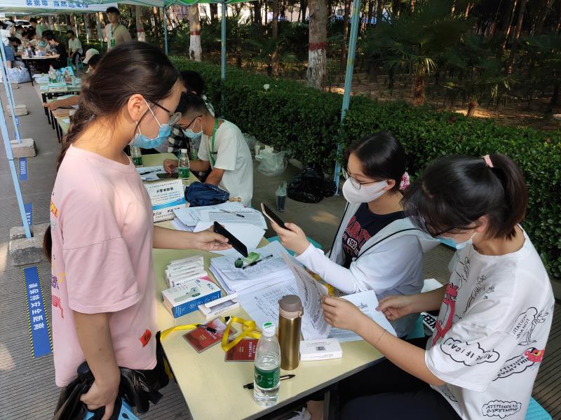 26日上午,返校报到工作正式开始。返校工作人员坚守岗位,严把关口,返校现场井然有序。在工作人员和志愿者们的引导下,返校学生有序排队并依次进行量测体温、行李消毒、提交健康登记卡、出示健康码等事项并了解疫期开学的规章制度,回到阔别许久的校园,同学们都表现的十分兴奋,脸上洋溢着笑容。报到场面温馨和谐。