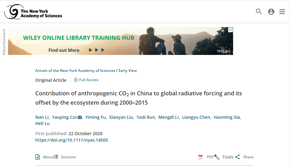 近日,该研究结果以“Contribution of anthropogenic CO2 to global radiative forcing and ecosystem’s offset during 2000-2015 in China”为题在Annals of the New York Academy of Sciences上发表。河南大学环境与规划球探足球比分