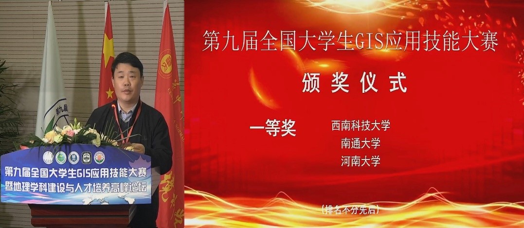 11月21日,由中国地理学会、中国地理信息产业协会主办的第九届全国大学生GIS应用技能大赛在华中师范大学成功举办。我院2017级本科生张嫣文、张晨、覃胜聪、刘畅在郑辉老师、宋宏权老师的指导下代表河南大学参赛并荣获一等奖。