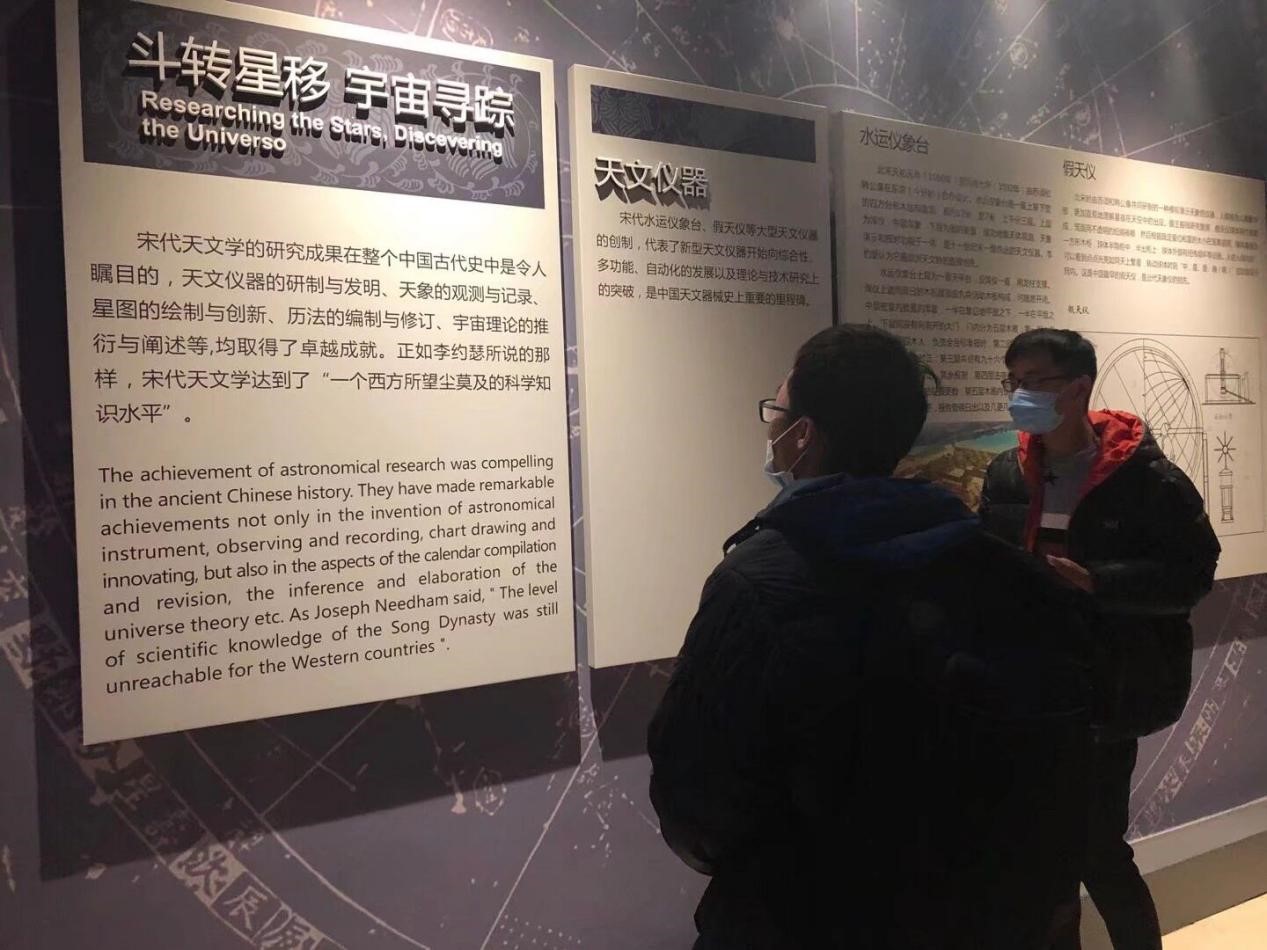 开封博物馆坐落于河南省开封市龙亭区,其内设有数十个展厅,馆藏文物珍宝千余件。在宋代科技展厅里,从海上航运的发展到天文天象的探索,各式各样在当时已领先世界的科技发明吸引着众人的目光,两层楼高的复原水运仪象台模型令大家为之赞叹。在书画类展馆里,社员们在欣赏名家名作的同时,也为动态清明上河图和与之相配套的互动电子屏感到新奇,从中领略到古代文物与现代科技的奇妙融合。从新石器时代到元明清时期,再到近现代社会,不同历史时期的代表文物,在众人面前交织成一幅悠长的画卷,缓缓地讲述着汴梁城千百年来的沧桑沉浮,闪耀着中华民族的智慧光芒。