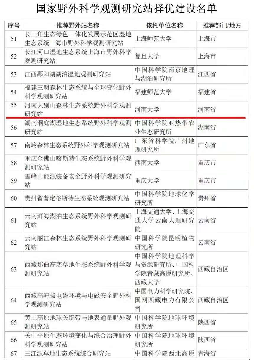 日前,科技部公布了《科技部办公厅关于组织填报〈国家野外科学观测研究站建设运行实施方案〉的通知》,依托我校建设的“河南大别山森林生态系统国家野外科学观测研究站”(简称大别山国家站)入选国家野外站择优建设名单之列。