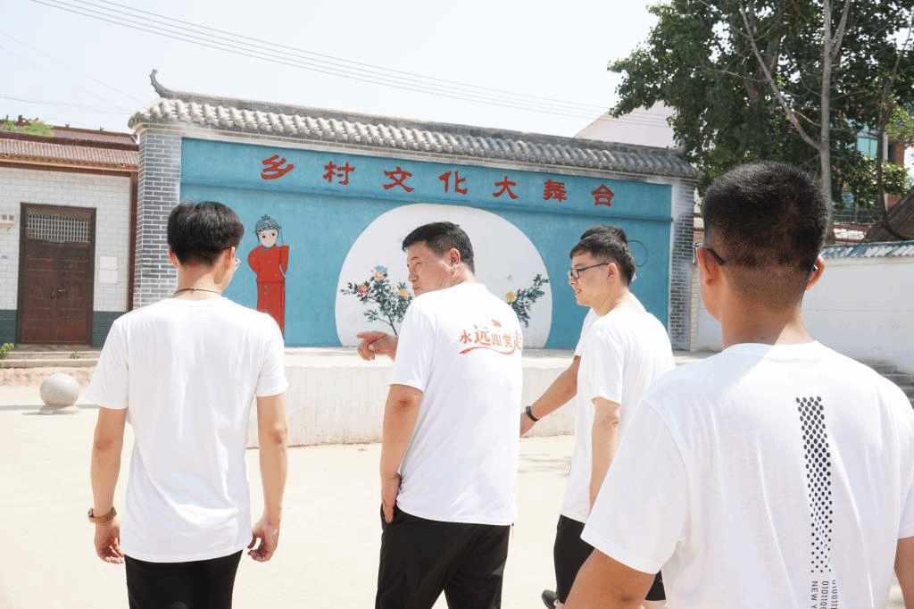 7月8日,调研团来到了朱仙镇北辛庄行政村同当地村委围绕党史、新中国建设、当前时事等开展主题党日活动,双方交流共同学习。在7月9日的实地考察中,调研团到达朱仙镇,首先在一些村落的主干道和广场开展乡村发展相关的调查和访谈。