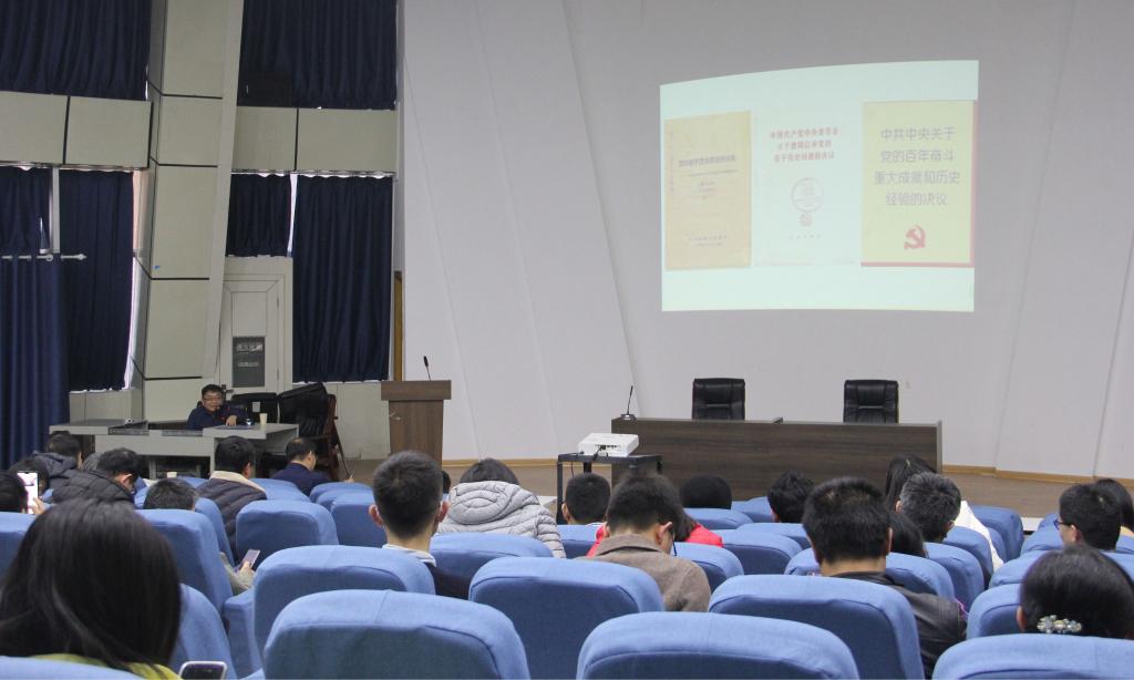教授刘德定应邀在锥形报告厅为我院师生作深入学习党的十九届六中全会精神的报告。报告会由党委副书记徐小军主持。