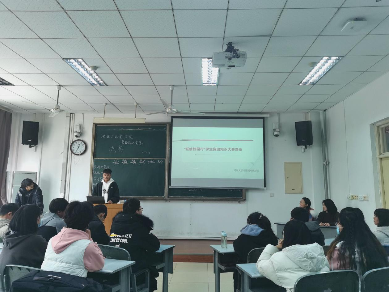 “诚信校园行”学生资助知识竞赛。经过初赛的选拔,由晋级选手所组成的四支队伍于12月11日下午在金明校区综合教学楼5107进行球探足球比分网