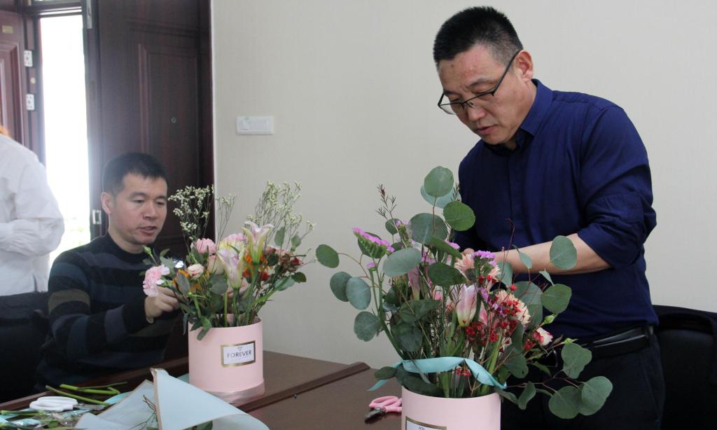 本次主题插花活动共有44名女教职工参加。活动开始前,邱永宽进行简短的发言,他赞扬了本次插花活动的意义,并为女教职工们送上节日祝福。活动邀请了专业的花艺老师现场指导,花艺师向女教职工们讲解了花材、色彩搭配等方面的知识,详细介绍了插花的艺术造型要素和技巧手法,并在现场做了生动的演示。接着女教职工们在插花老师的指导下,挑选花朵、修剪枝叶、整合造型,用灵巧的双手诠释了对花朵和美的理解。各色各样的花经过了她们的修剪整合,变成了一件件赏心悦目的艺术品。最后女教职工们和自己的插花作品进行合影留念。