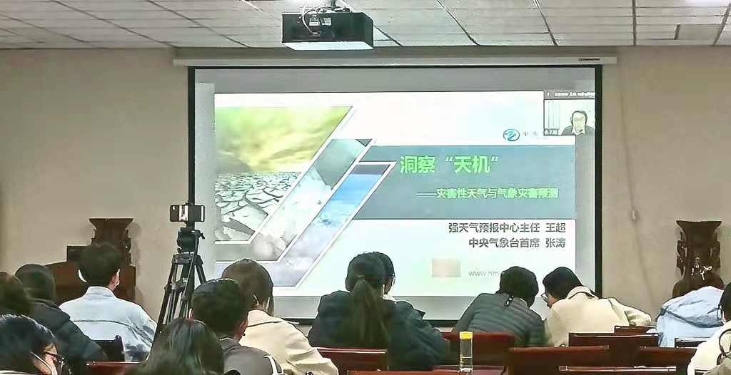 赵越简要说明本次讲座的内容和目的,邀请人韩艳对两位专家的到来表示热烈欢迎。韩艳向与会人员介绍了两位专家及他们在我国气象灾害预警等方面的突出贡献,结合“7.20”郑州特大暴雨事件等气象灾害事件和世界气象日的相关信息阐述了学习气象知识的重要性和必要性。