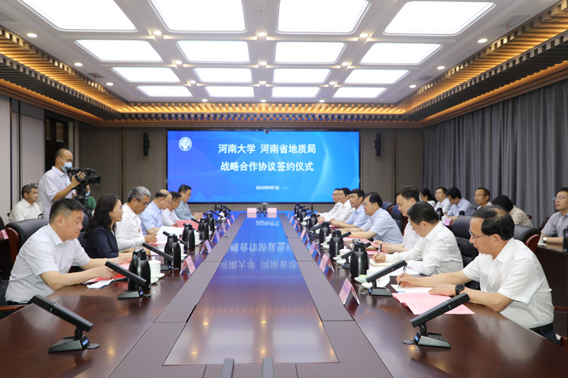 6月7日上午,河南大学与河南省地质局战略合作框架协议签约仪式在河南大学郑州校区举行。