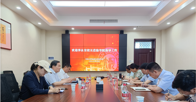 李永安介绍了河南省地质职工学校的隶属机构及相关组织的总体情况,表达了与我院在合作开展研究生教育、高级研修班、短期新知识新技能培训班以及设立河南大学省地质局校外教学点进行成人学历教育方面的合作意愿。