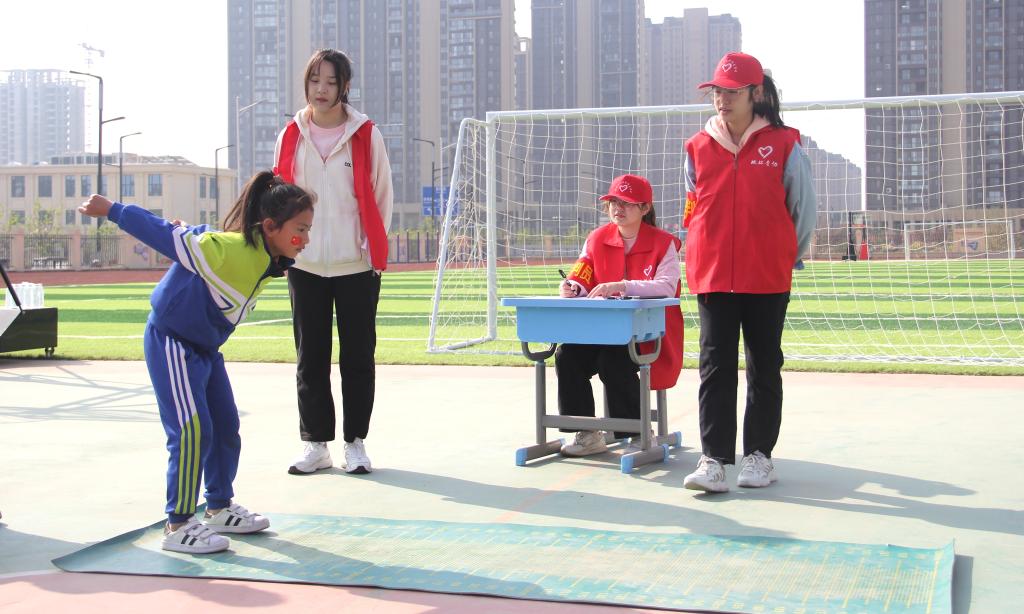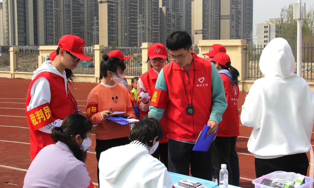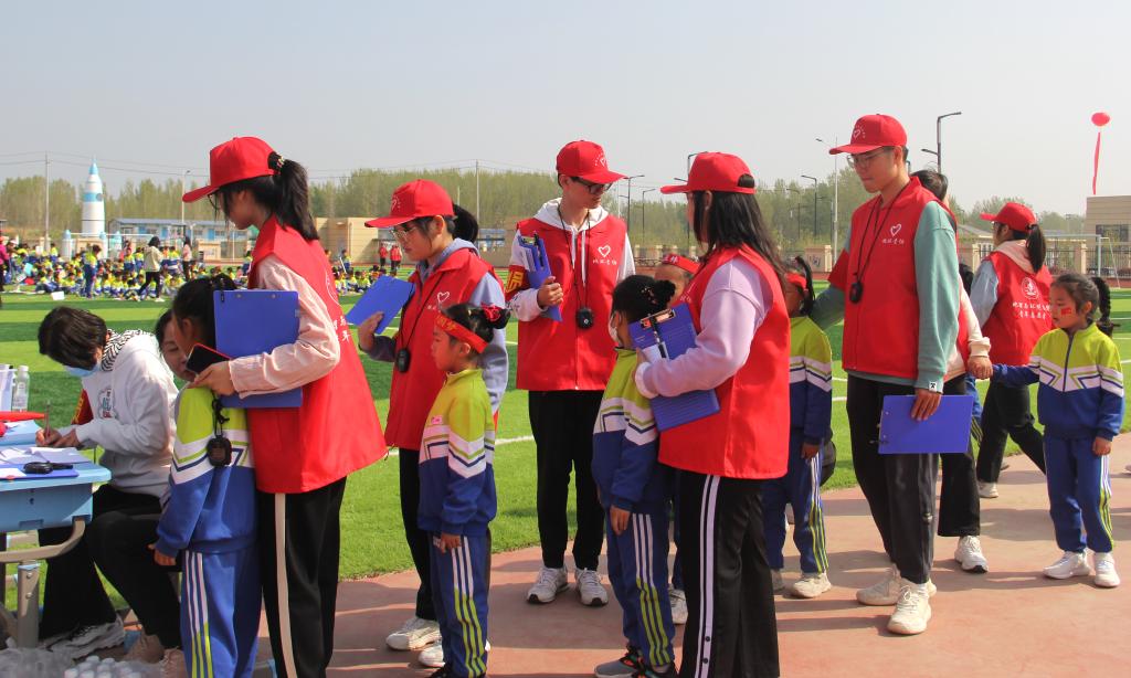 志愿者们前往协助河南大学附属小学金明校区举办“阳光运动,悦享童年”第一届春季运动会。共有30余名志愿者以裁判身份参与此次活动,协助附小教师开展运动会的各项比赛。