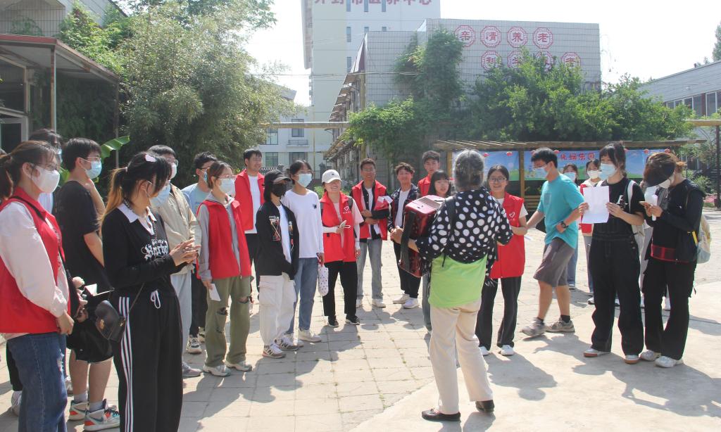 的志愿者表演了诗朗诵《我和我的祖国》与歌曲《探清水河》,我院学生带来歌曲舞蹈《听我说谢谢你》与《粉红色的回忆》,勾起了老一辈建设者的青春回忆。老人们打着节奏,挥舞着手中的彩色丝带,庭院里欢声笑语此起彼伏。在欢快的氛围下,台下的老人们也纷纷上台表演才艺,一曲《红色娘子军》,展现了他们不减当年的爱国热忱。郑淑宾奶奶用手风琴演奏的《山楂树》,更是讲述了她曾经的事迹。她还寄语志愿者们:要好好学习、珍惜时光年华。表演结束后,志愿者们在室内同老人们聊天、下象棋,听他们讲述曾经的动人故事,活动在大家的欢声笑语中结束。