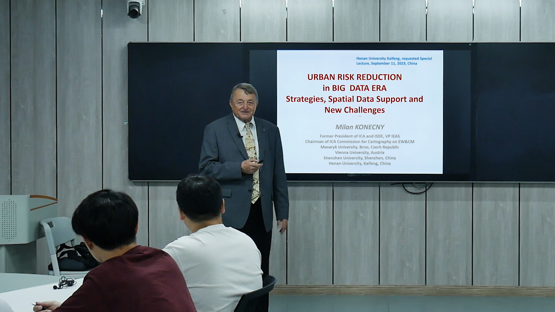院士Milan Konečný应我院秦明周教授、丁志伟教授邀请,在综合教学楼4202研讨教室开展了主题为“大数据时代的城市风险降低策略、空间数据支持与新挑战”的特邀讲座。本次讲座由球探足球比分网
