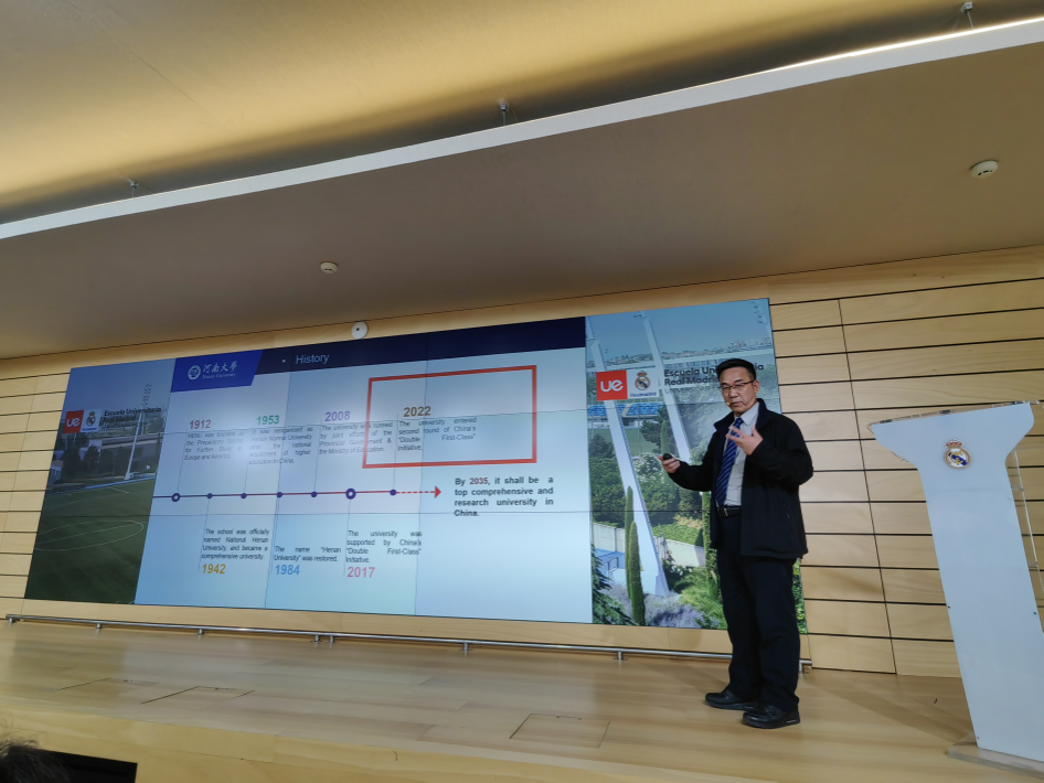 副校长傅声雷在西班牙马德里欧洲大学宣讲河南大学历史、学科及国际化概况