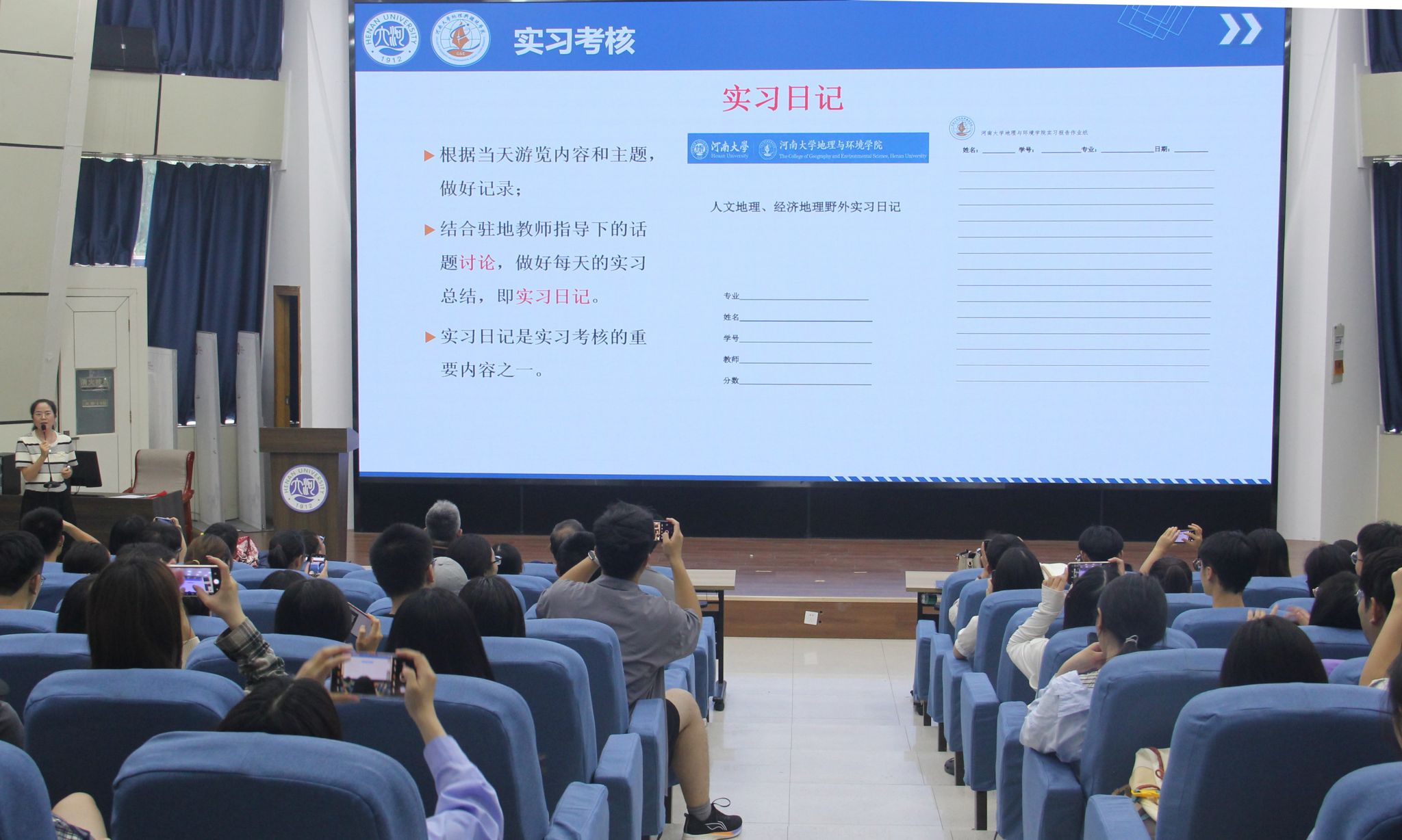 会议伊始,秦明周向学生讲述了野外实习的目的和重要意义。他提出野外观察和调研对于地理学习特别重要,学生可以利用学习过的理论去分析在野外看到的现象、解决遇到的问题。野外实习不仅可以锻炼学生的野外观察能力,也可以培养锻炼学生的团队精神。吴娜琳讲述了实习的考核要求,本次实习成绩由实习日记、实践调研、实习表现、实习总结展示、实习报告六部分组成。