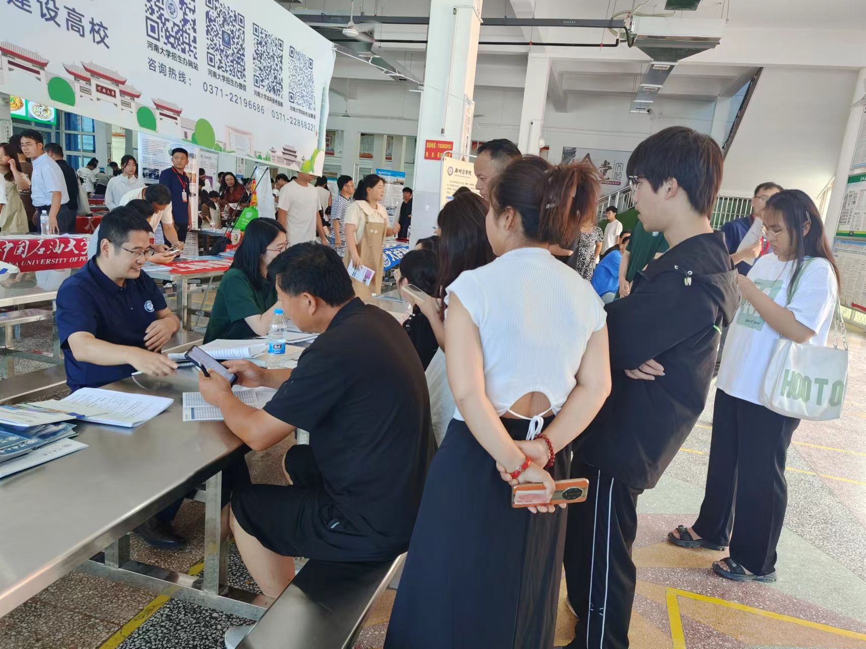 活动的主要目的是为虞城县高级中学的学生们提供专业的指导与建议,帮助他们在高考后正确填报志愿,为未来的大学生活和职业生涯做好规划。在丁志伟的引领下,团队成员一方面就志愿填报的策略、重点大学信息、专业选择等重要话题,为学生和家长提供了详尽的一对一咨询服务;另一方面在设立的多个咨询台前,耐心地为每位前来咨询的学生提供个性化的建议,解答他们关于志愿填报的各种疑惑。此外,团队还通过提供学校发放的宣传材料如招生简章和专业介绍手册,让报考志愿的家长和考生进一步了解河南大学的办学定位和特色亮点。