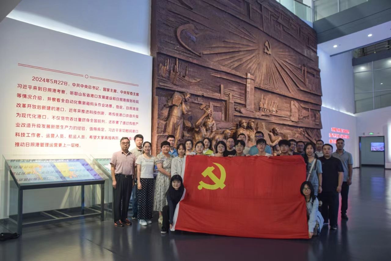 副院长王慧的报告。他用深入浅出的语言从日照市概况、城市规划与城市空间格局演化、市域经济发展特征、区域协调与区域发展、区域发展面临的机遇与挑战五方面进行了讲解,实习队员认真听讲、积极思考。6月29日下午,实习队参观海龙湾项目和日照港展览馆。海龙湾是全国首个港口工业岸线退港还海项目。海龙湾的原址是日照港最早的煤炭堆场,但随着港口规模迅速扩大和城市建设快速发展,港城矛盾日益凸显,为给城市发展让渡空间,日照市退港还海,重塑碧海蓝天美丽画卷。在日照港展览馆,实习队一同观看港口宣传视频,对日照港口的发展历史和发展成果有了初步的了解。日照港现拥有岚山港和石臼港两大港区,是国家重点建设的沿海主要港口。实习队成员在讲解员的带领下学习了港口的发展布局、发展历程以及各个分区的主要功能,在党史馆中体悟日照港口建设者传承了一代又一代的楷模精神。
