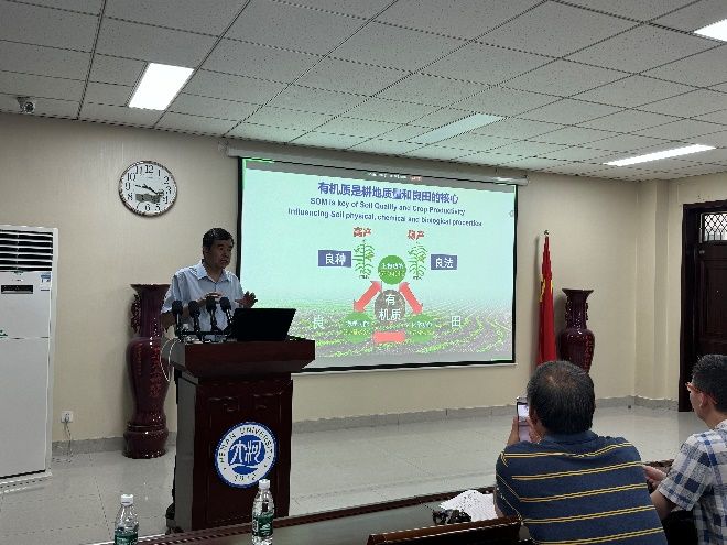 受傅声雷副校长的委托,秦明周教授主持了报告会。徐院士系统、深入地讲解了建立我国耕地质量长期试验网的科学意义,图文并茂地解析了其研究团队针对我国农田土壤有机质含量低、酸化加剧等土壤退化重大科技难题,几十年如一日,逐步建立土壤有机质定量提升和红壤酸化阻控的理论体系与关键技术的研究历程;最后,着重强调了土壤生物多样性与耕地质量和土壤健康的紧密关系,并期望河南大学土壤生物研究相关团队在其中多做贡献。
