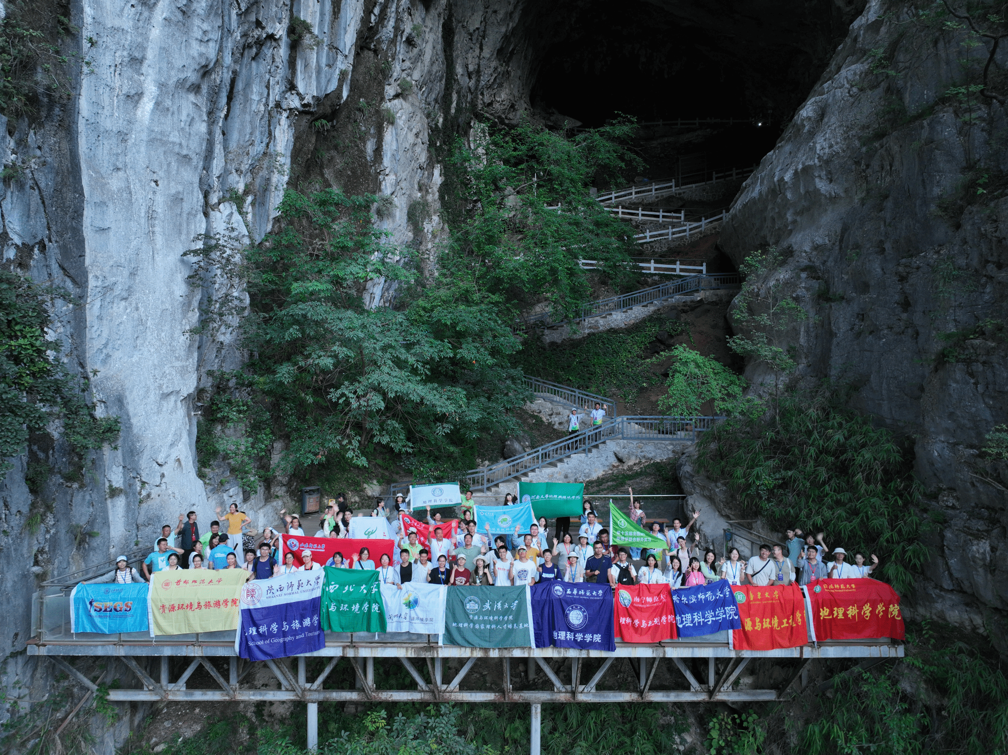乐业天坑群是由特大型与大型天坑组成的地貌景观,地理特征典型,被誉为“世界天坑博物馆”。本次实习主要考察了乐业天坑群中的大石围天坑及大石围天坑东峰的马峰洞。南宁师范大学的卢炳雄老师为同学们讲解了大石围天坑区域的地质背景和构造运动,还介绍了该区域地下河系统,并通过提问引导同学们思考天坑形成与地下河的关系。