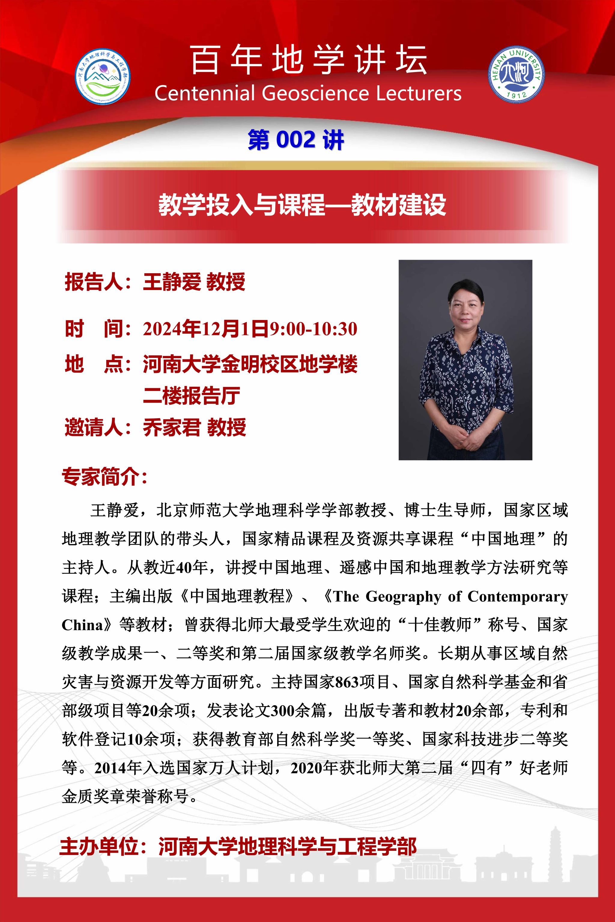 百年地学讲坛 | 教学投入与课程-教材建设