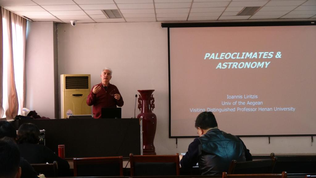 5日上午,LoannisLiritzis教授作了题为“史前黑金‘黑曜岩’测年方法与物源分析”的精彩报告,首先LoannisLiritzis教授从多方面对考古黑曜岩进行了详细介绍,重点讨论了黑曜岩测年份的研究方法,接下来从技术、标准化和数据共享前景方面对黑曜岩物源元素进行分析。会议中,冯兆东教授就相关问题和LoannisLiritzis教授进行了深入交流与探讨。下午,以“古气候与天文学”为题,LoannisLiritzis教授提出造成地球气候变化(以极地冰盖的扩大与消减等为标志)的重要原因就是米兰科维奇天文理论,并讲解了研究过去环境和生物多样性记录的意义和古气候和海面变化对人类发展的显著影响。6日上午,LoannisLiritzis教授就自己目前的研究进行了题为“科技考古研究对可持续发展的启示”的报告,并表示该领域正是LoannisLiritzis教授团队正在努力研究突破的方向。下午,以神话故事为引,借助灾害考古学地中海东部的案例进行了以下讲解:在作为证据的考古记录中的术语和问题定义;灾害考古学的例子和灾难的文化来源;出现的地理神话学。报告会以几个富有趣味性的选择题作为结尾。7日上午,LoannisLiritzis教授对“释光测年方法在考古学和地学研究中的应用”进行了详细的介绍,并回答了现场提问,报告会圆满结束。