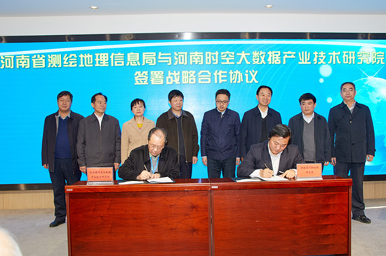 在热烈的掌声中,河南省发改委高技术处处长唐兴丽和王家耀为“河南省大数据创新平台——河南省时空大数据产业技术研究院”揭牌。刘济宝和王家耀分别代表河南省测绘地理信息局与河南省时空大数据产业技术研究院签署战略合作协议。