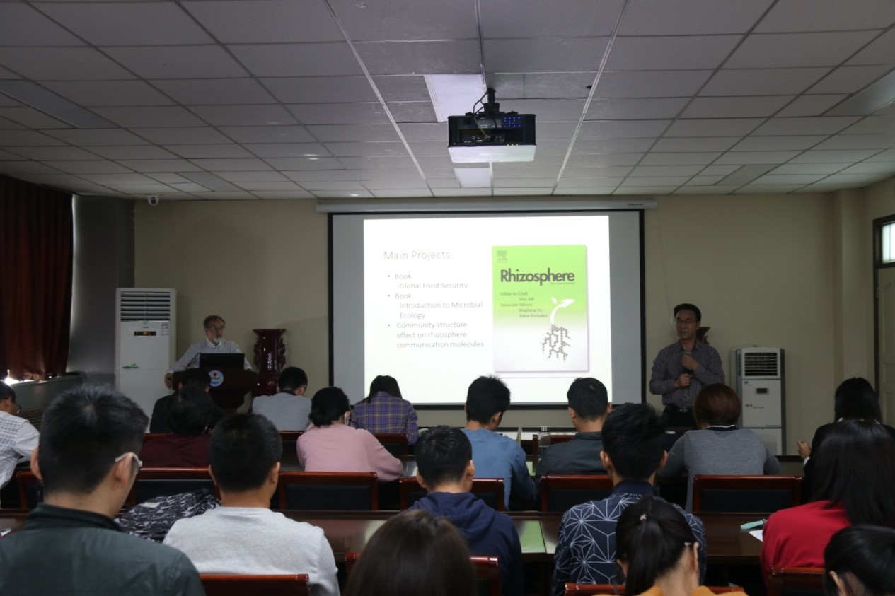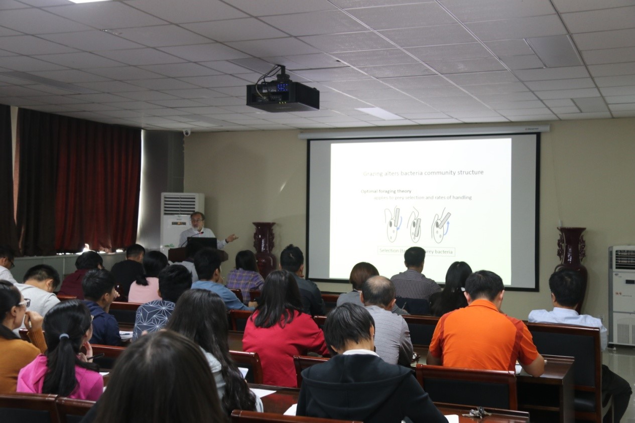 Sina Adl教授作了题为“Soil food webs: at the Frontier of SoilEcology”的学术报告。他结合自己的研究向大家讲述了土壤食物网研究中的前沿问题并介绍了一些研究中需要关注的方面,比如研究需要恰当的采样方式和统计方法,并且还要结合新的方法和技术,比如同位素和DNA技术。报告结束后,Sina Adl教授与广大师生在相关技术及其他方面进行了交流探讨。另外,Sina Adl教授就科学研究与论文写作相关问题与我院部分科研人员进行了交流。思想与思想的碰撞更是为此次学术报告增添了几分精彩。报告会对我院相关方面的科研起到了指引方向的作用。此次报告会的圆满举行让我院师生拓宽了视野,学习到了土壤微生物学与生态学进展方面的诸多知识。