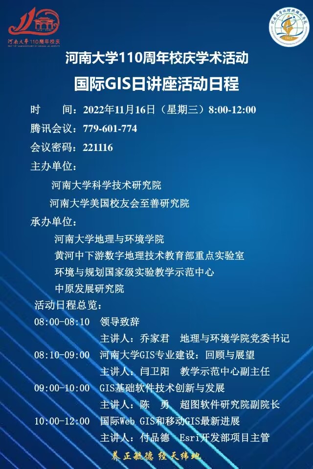 河南大学110周年校庆学术活动:国际GIS日讲座活动日程