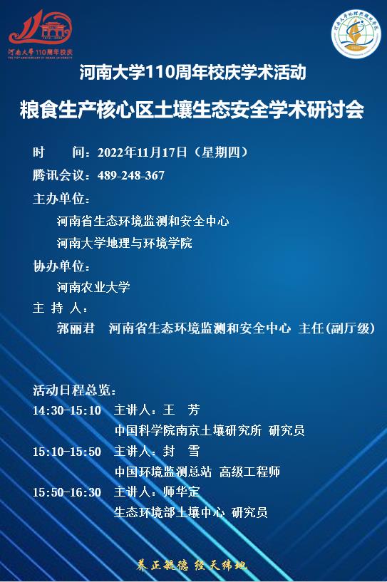 河南大学110周年校庆学术活动:粮食生产核心区土壤生态安全学术研讨会