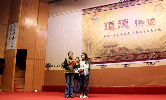 此次道德讲堂以“海纳百川、立德树人”为主题,弘扬中华文化,传播优良道德,凸显当代地理人海纳百川的博大情怀、河南大学立德为本的育人精神,帮助广大学生树立良好的文化信仰和正确的人生观、世界观和价值观,传播社会正能量,全面促进和谐文明校园建设,为我校正常全国文明单位做出积极贡献。