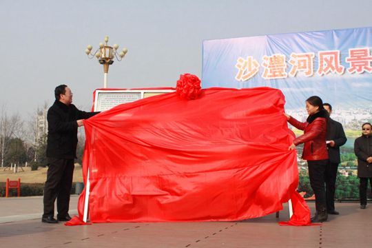 副院长翟秋敏与沙澧河建管委主任郭新增共同揭牌。漯河市副市长栗社臣,沙澧河建管委副书记刘振阳及我校部分教师代表参加仪式。