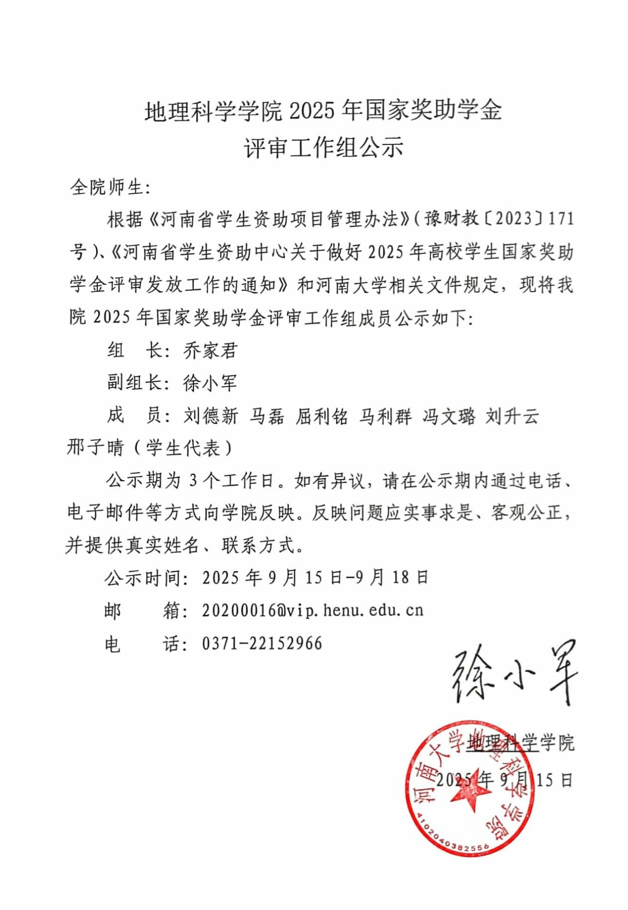 球探足球比分网 2025年国家奖助学金评审工作组公示