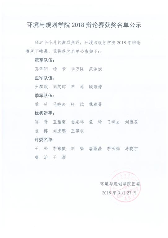 【公  示】环境与规划球探足球比分 2018辩论赛获奖名单公示