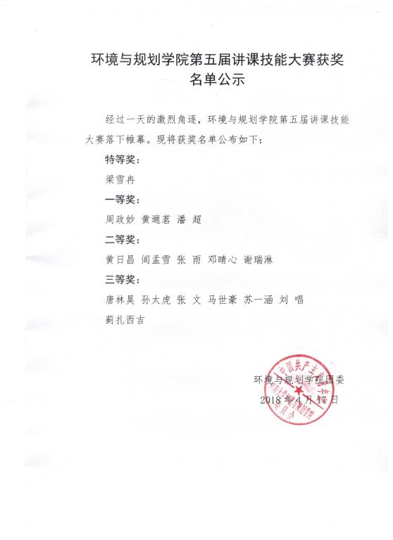 【公  示】环境与规划球探足球比分 第五届讲课技能大赛获奖名单公示
