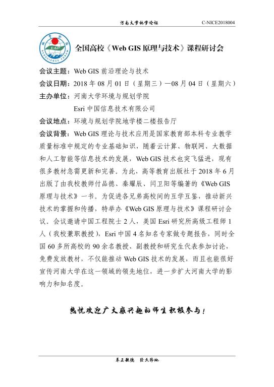 附件【已下载WebGIS会议指南.docx次】 附件【已下载关于举办《Web GIS 原理与技术》课程研讨会的通知.docx次】