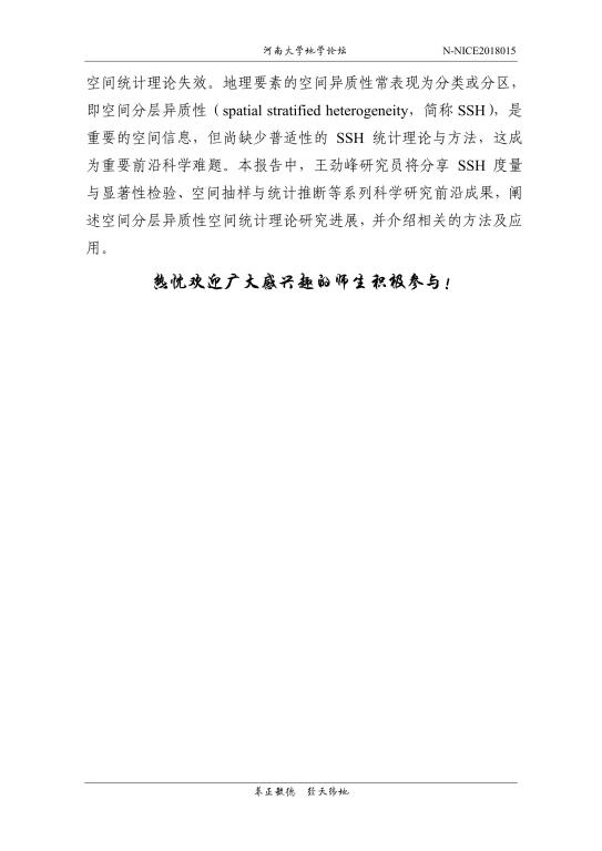 【地学论坛】王劲峰:地理空间分异性理论、方法及应用(时间:9.21,16:00-17:30)