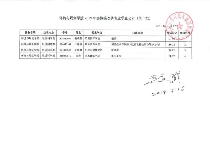【公  示】环境与规划球探足球比分 2019年春拟接收转专业学生公示(第二批)