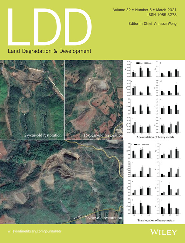 、河南省沿黄生态安全与乡村振兴引智平台秦明周教授课题组在植物对土壤重金属迁移影响取得新的进展。相关成果以“Effects of vegetation restoration on accumulation and translocation of heavy metals in post-mining areas”为题,发表在Land Degradation & Development学术期刊(doi.org/10.1002/ldr.3861),并入选为封面文章。