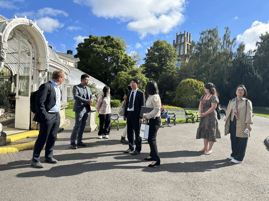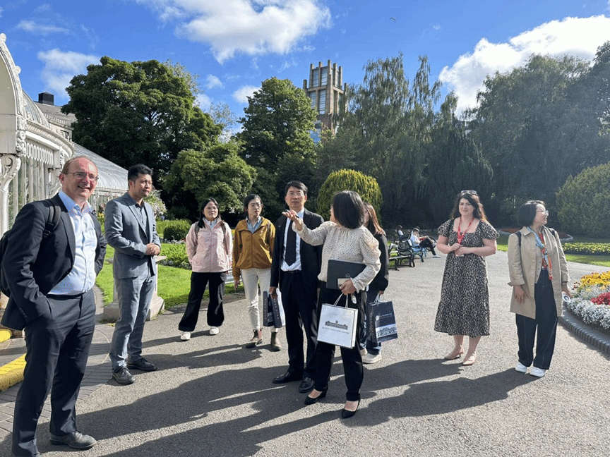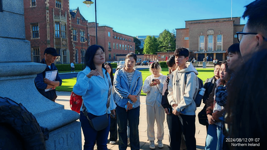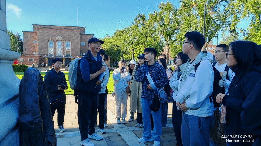 的同学们也在贝尔法斯特女王大学校园内展开了丰富的参观活动。在导游的引领下,同学们穿越校园的历史长廊,聆听了学校悠久的历史与辉煌的现状,对这座学术殿堂有了更加全面的认识。随后,一行人前往了学校附近的植物园,这里成为了巩固植被地带性、植被分布与环境关系等知识的绝佳场所。同学们在实地观察中,将课堂上学到的理论知识与实际情况相结合,加深了对植被生态学的理解。
