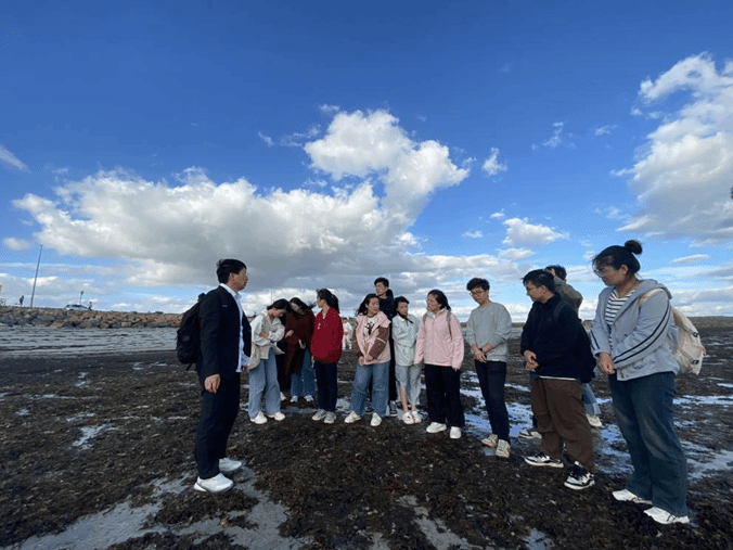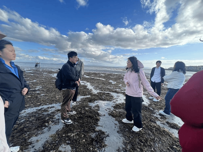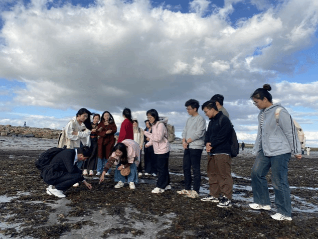 下午,实习活动继续深入。屈利铭老师带领的一队师生一行前往高威南部海滨进行了实地考察与学习。她为学生们详细讲解了藻类植物的生长习性、海藻爆发对环境的影响等环境问题。通过实地观察和学习,学生们对海洋生态系统的复杂性和脆弱性有了更深刻的认识,更是体会到了人类与自然和谐共生的重要性。