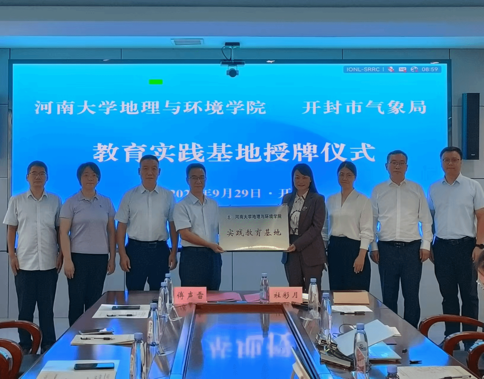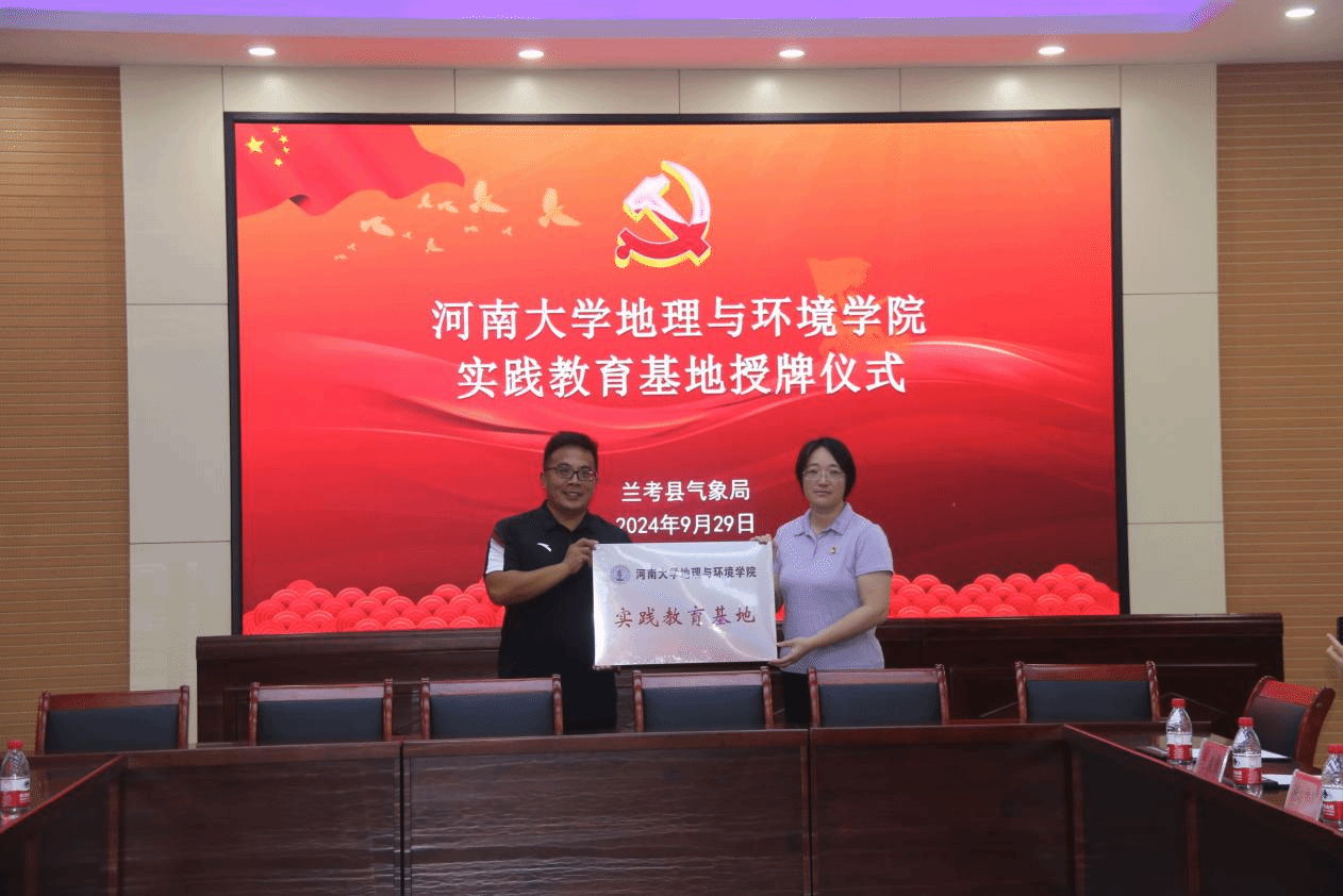代表向兰考县气象局颁发“实践教育基地”牌匾,标志着双方合作关系的正式确立。