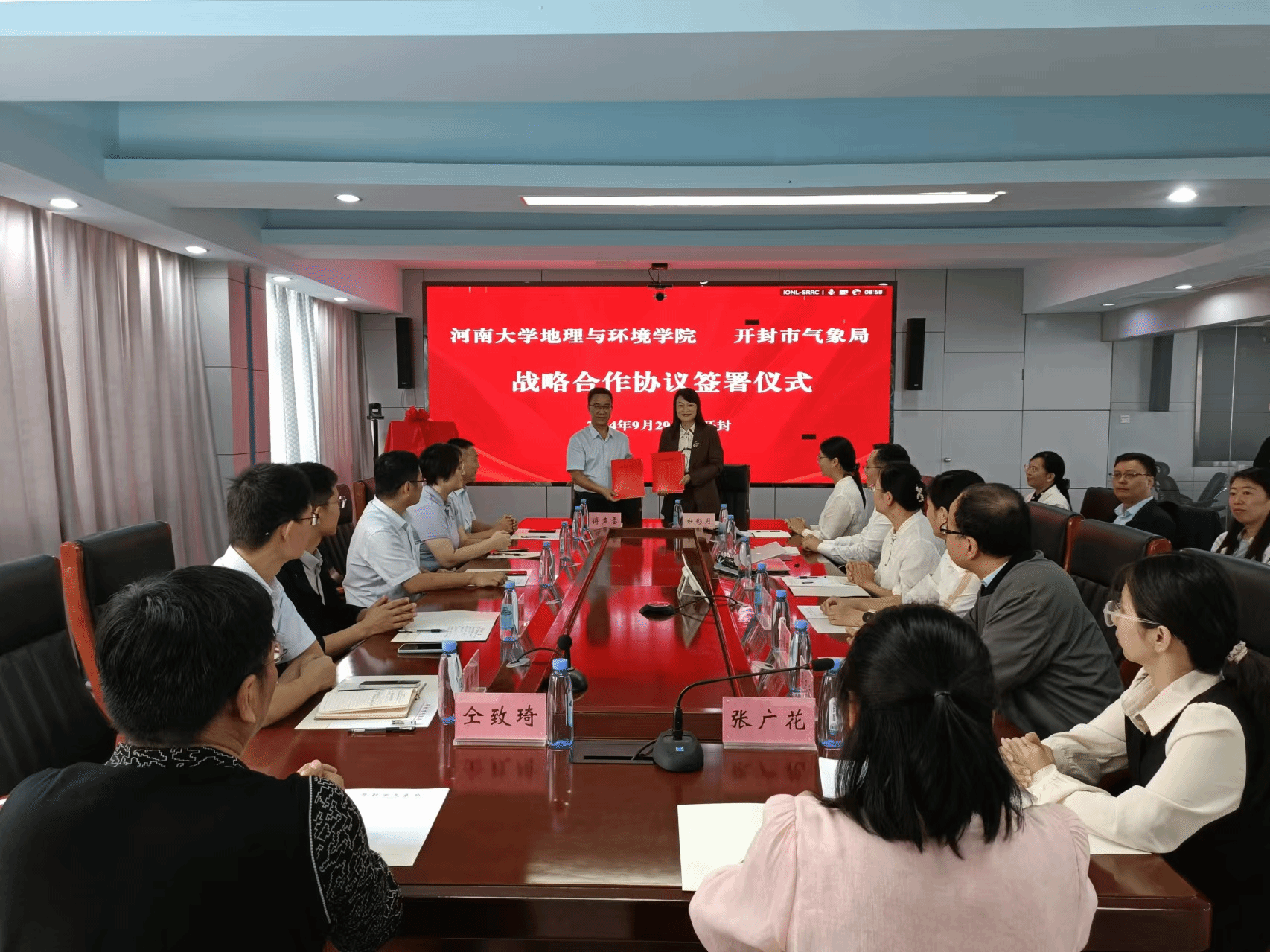为全面推进我院与开封市气象局的战略合作,在前期调研、座谈和深入交流的基础上,双方在2024年9月29日举行了战略合作签约仪式,旨在全面开启“产学研培”深度融合的局校合作新局面。上午8点30分,仪式在开封市气象局举行,气象局出席的领导有党组书记、局长杜彩月,党组成员、副局长李跃华、张新杰以及各内设机构、各直属单位负责人,我校出席的领导有河南大学学术副校长、球探足球比分网