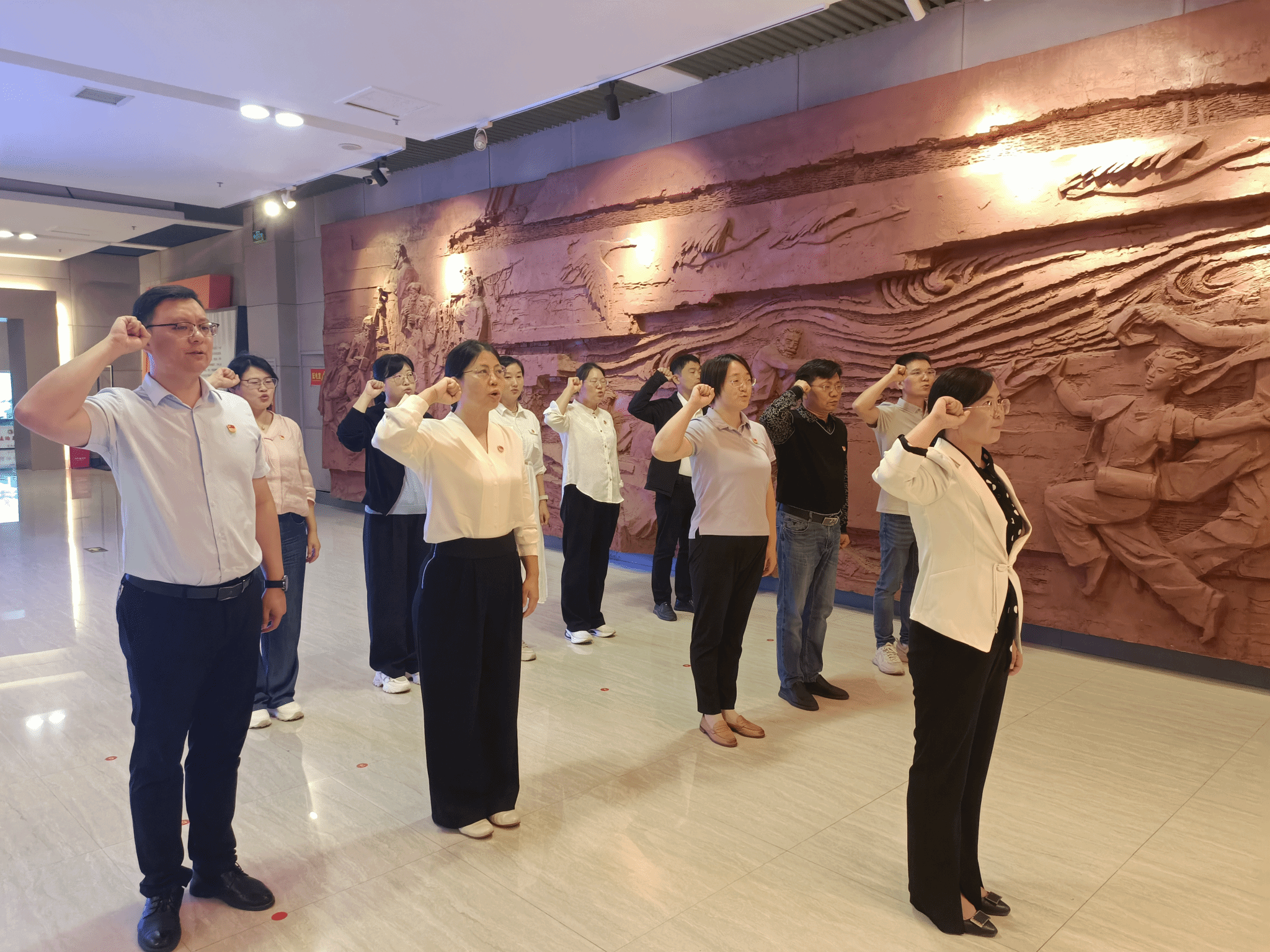 在焦裕禄纪念馆内,党员们认真倾听讲解员的介绍,通过实物、图文、影像与历史档案资料,深切感受焦裕禄同志在艰苦生活、奋力战斗中铸就的“亲民爱民、艰苦奋斗、科学求实、迎难而上、无私奉献”的焦裕禄精神。参观完毕,党员们在纪念馆党旗下重温入党誓词,进一步增强了同志们的理想信念、责任感和为人民服务的使命感。