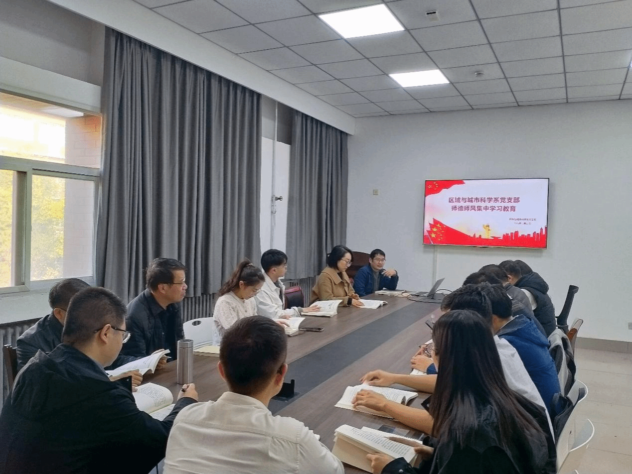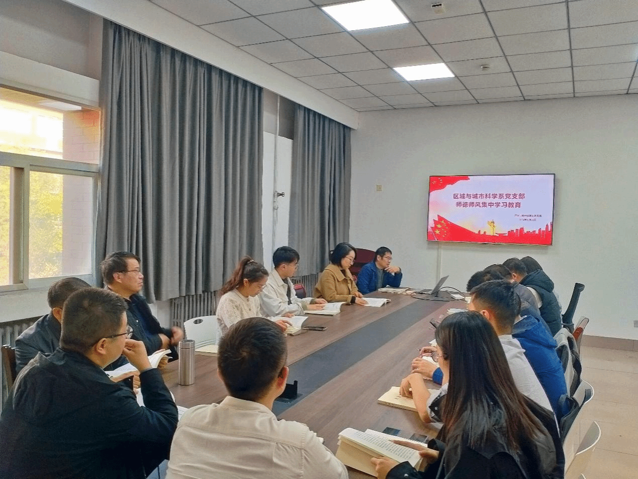 为深入贯彻习近平总书记关于教育的重要论述,全面加强师德师风建设,提高教师队伍的整体素质。11月21日下午,我院区域与城市科学系党支部在人文楼307开展师德师风集中学习教育活动。本次活动由区域与城市科学系党支部书记丁志伟主持,支部全体党员参加。