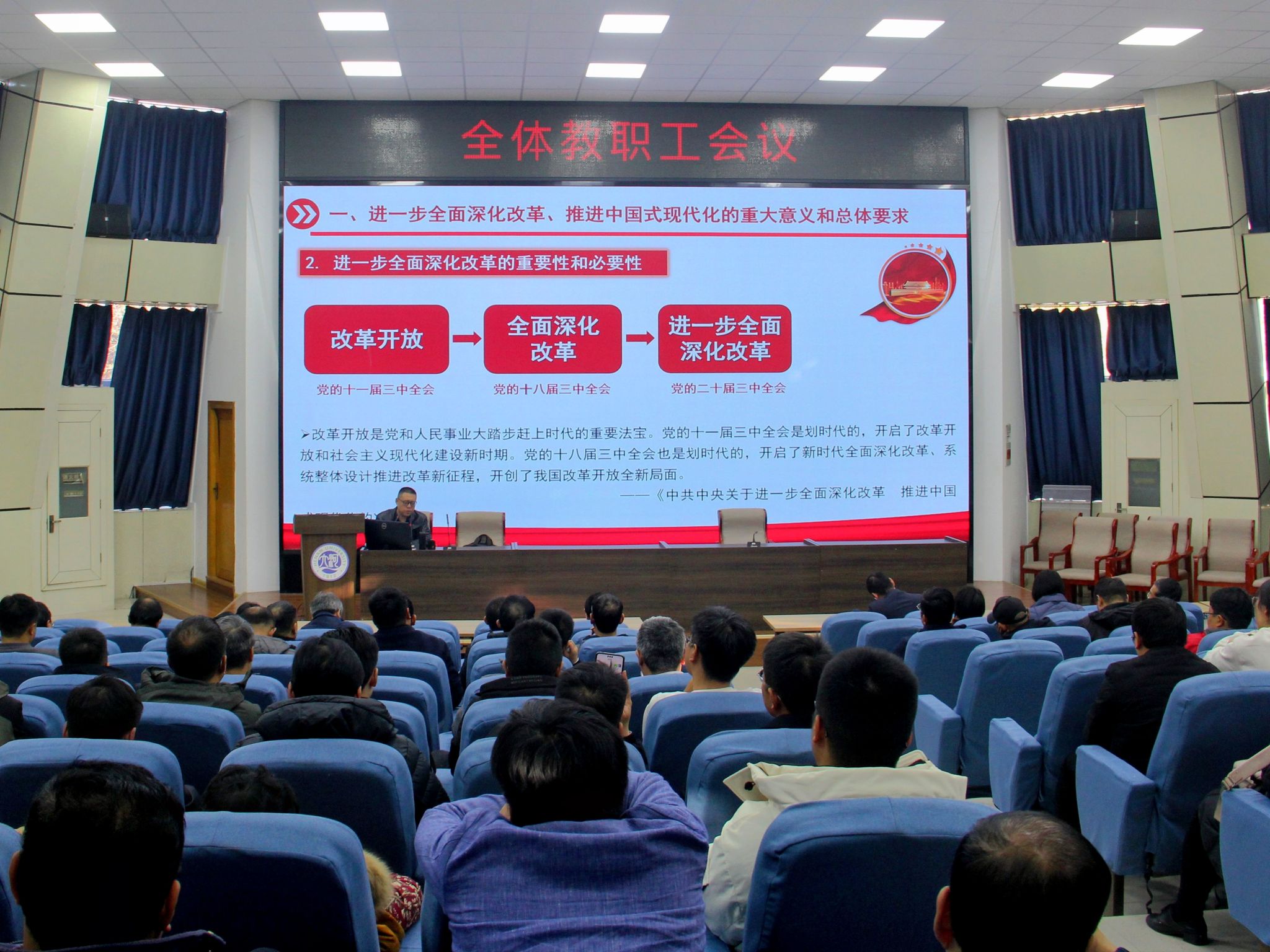 全体教职工对他的到来表示热烈欢迎。报告伊始,张涛以饱满的热情和深厚的理论功底,深入浅出地向全院教职工讲述了在中国共产党领导下波澜壮阔的改革开放历程。他系统回顾了党的十一届三中全会以来,我国改革开放所取得的辉煌成就与宝贵经验,讲述了在这一伟大进程中,中国共产党如何始终坚持“解放思想、实事求是”的思想路线,带领全国人民不断开拓进取、砥砺前行。随后,张涛深入剖析了现代化社会转型的特征以及改革必须秉持系统观念的原因,详细阐述了坚持以系统观念进一步全面深化改革的理论基础和现实意义,进一步增强了教职工的政治意识和思想觉悟,也为球探足球比分