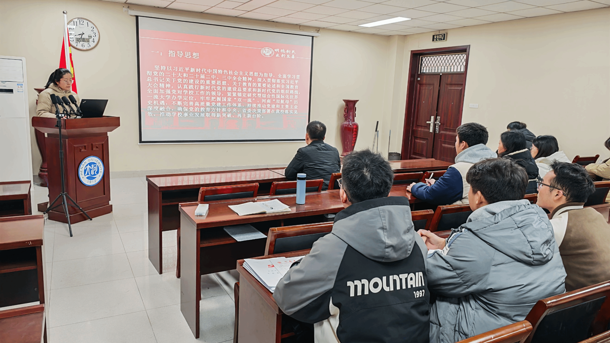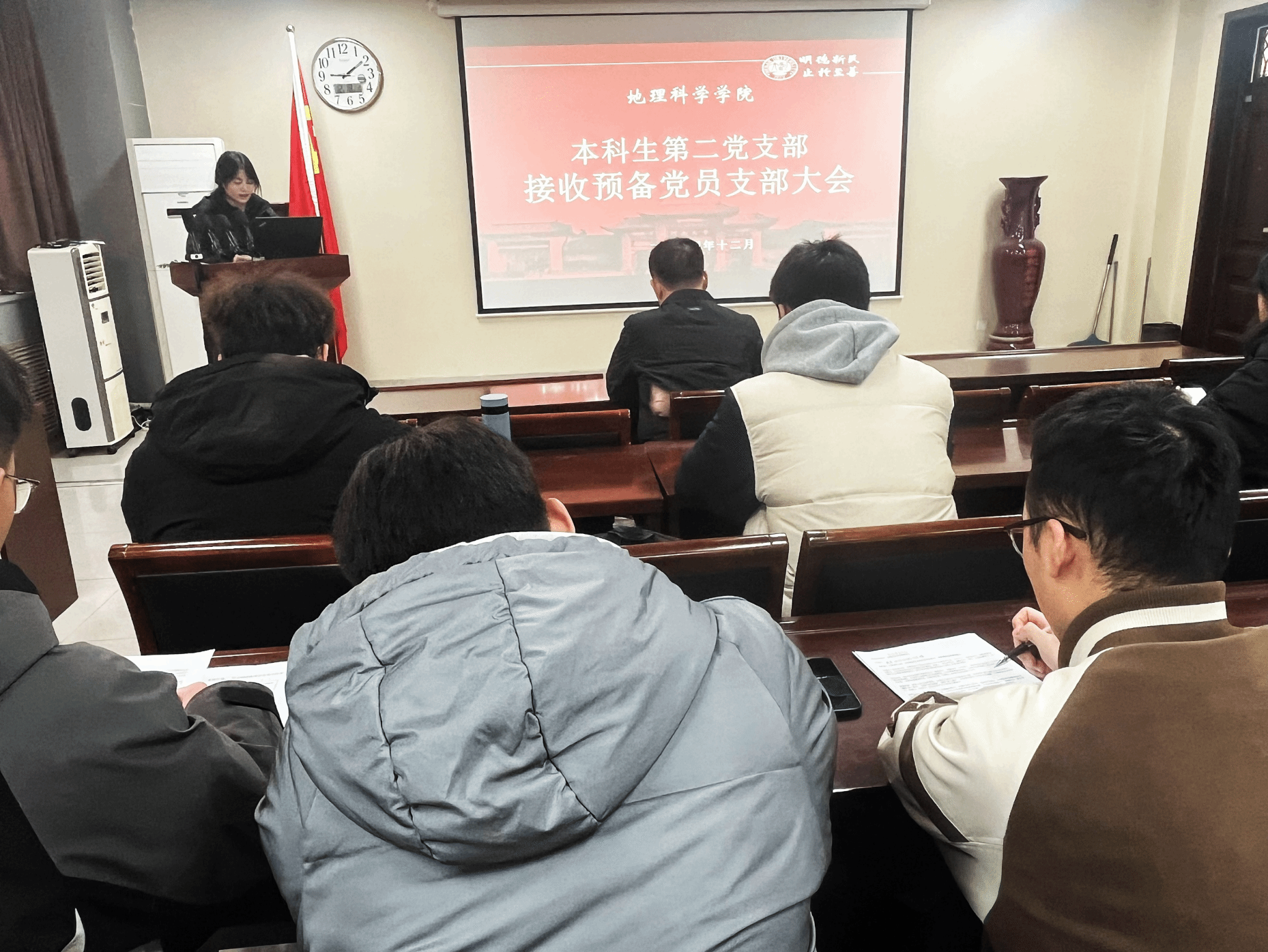 为深入学习我校创新发展年工作要求,贯彻暑期战略发展研讨会会议精神,并结合支部实际情况,共同学习《河南大学以高质量党建引领一流大学建设的实施意见》的精神(以下简称《实施意见》),12月10日上午,我院本科生第二党支部于地学楼二楼学术报告厅召开专题组织生活会暨接收预备党员支部大会。会议由支部宣传委员马利群主持,支部全体党员及发展对象积极参与。