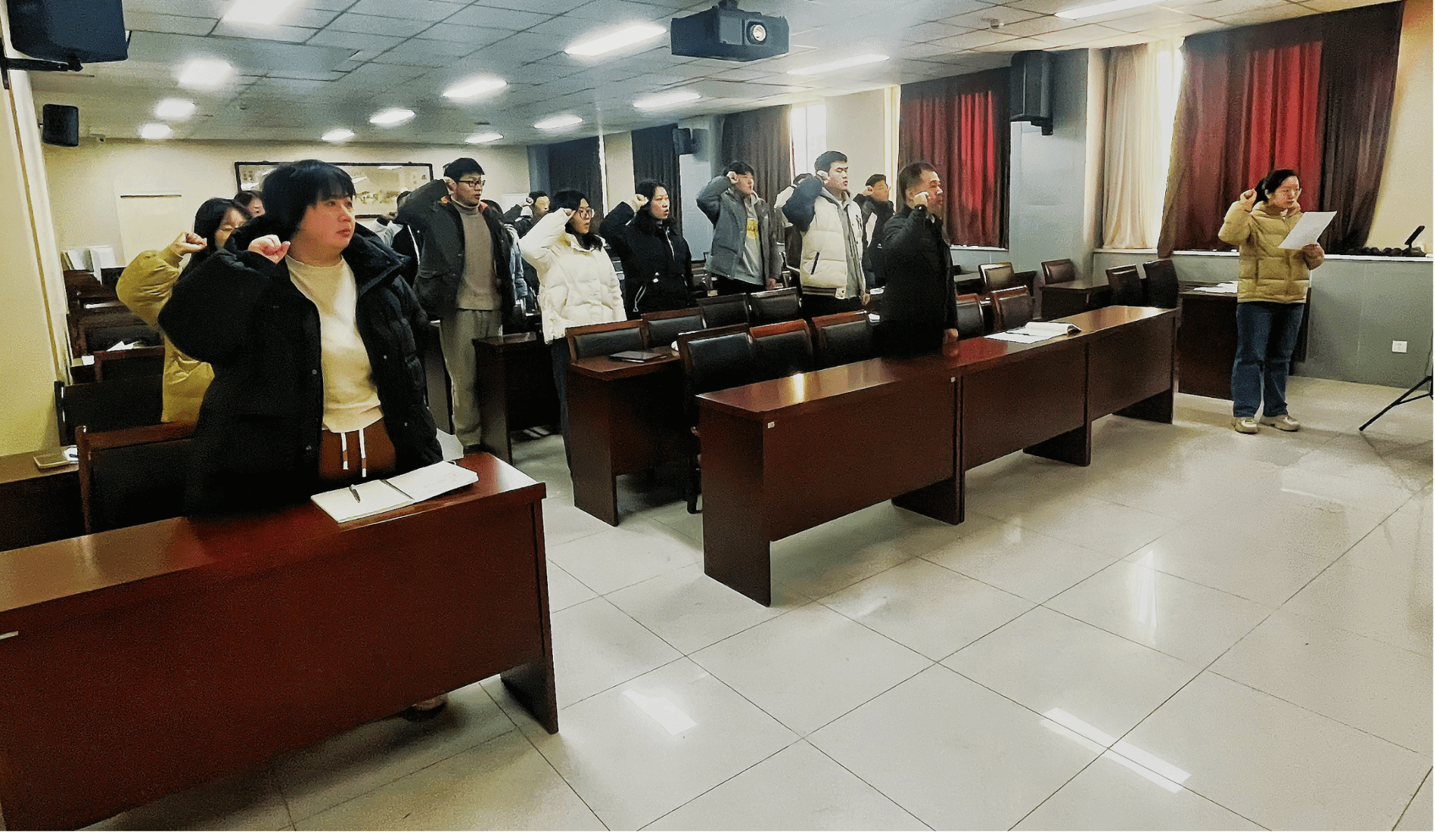 在庄严而神圣的宣誓声中,7名新党员面向党旗郑重宣誓,深刻表达了他们为共产主义事业奋斗终身的坚定决心和崇高信念。同时,支部正式党员也重温了入党誓词,再次坚定了自己的信仰和追求。