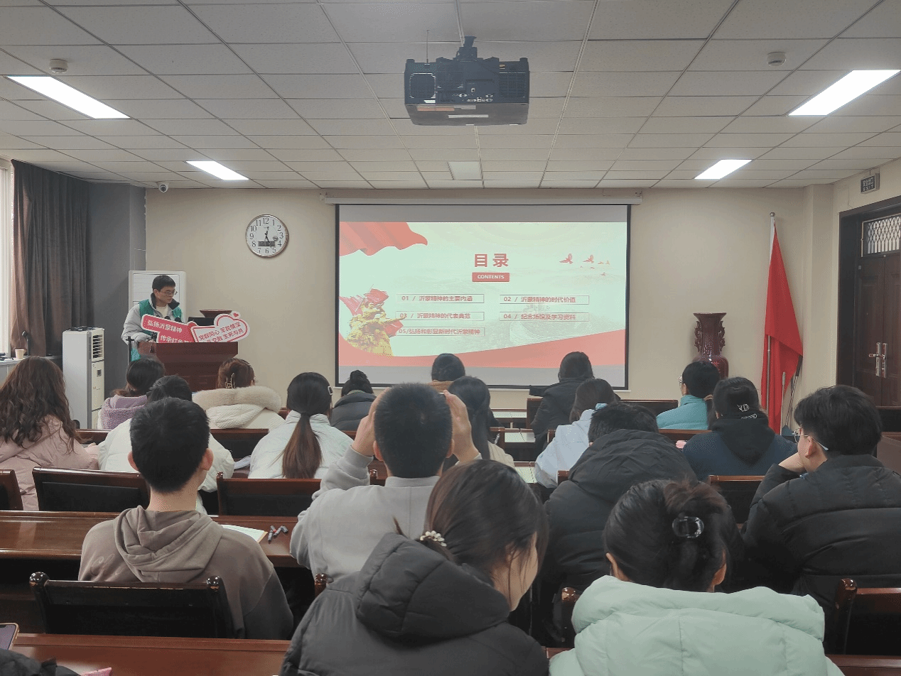 活动的第一部分,由宣讲团成员为与会人员讲解沂蒙精神与遵义会议精神。他们提到,沂蒙精神是山东沂蒙山区人民在革命战争年代形成的伟大精神,其核心是“爱党爱军、开拓奋进、艰苦创业、无私奉献”。沂蒙精神蕴含着深厚的家国情怀,在当下仍然激励着我们勇于担当,积极投身于国家和民族的事业中,以实际行动报效祖国、服务人民。遵义会议作为党的历史上一次具有伟大转折意义的重要会议,在把马克思主义基本原理同中国具体实际相结合、坚持走独立自主道路、坚定正确的政治路线和政策策略等方面,留下了宝贵经验和重要启示。遵义会议为我们在新时代推进中国式现代化的伟大征程中,进一步深化“两个结合”所提供的方法论,对于当下推进党的建设新的伟大工程、实现中华民族伟大复兴的中国梦仍具有重要的指导意义。