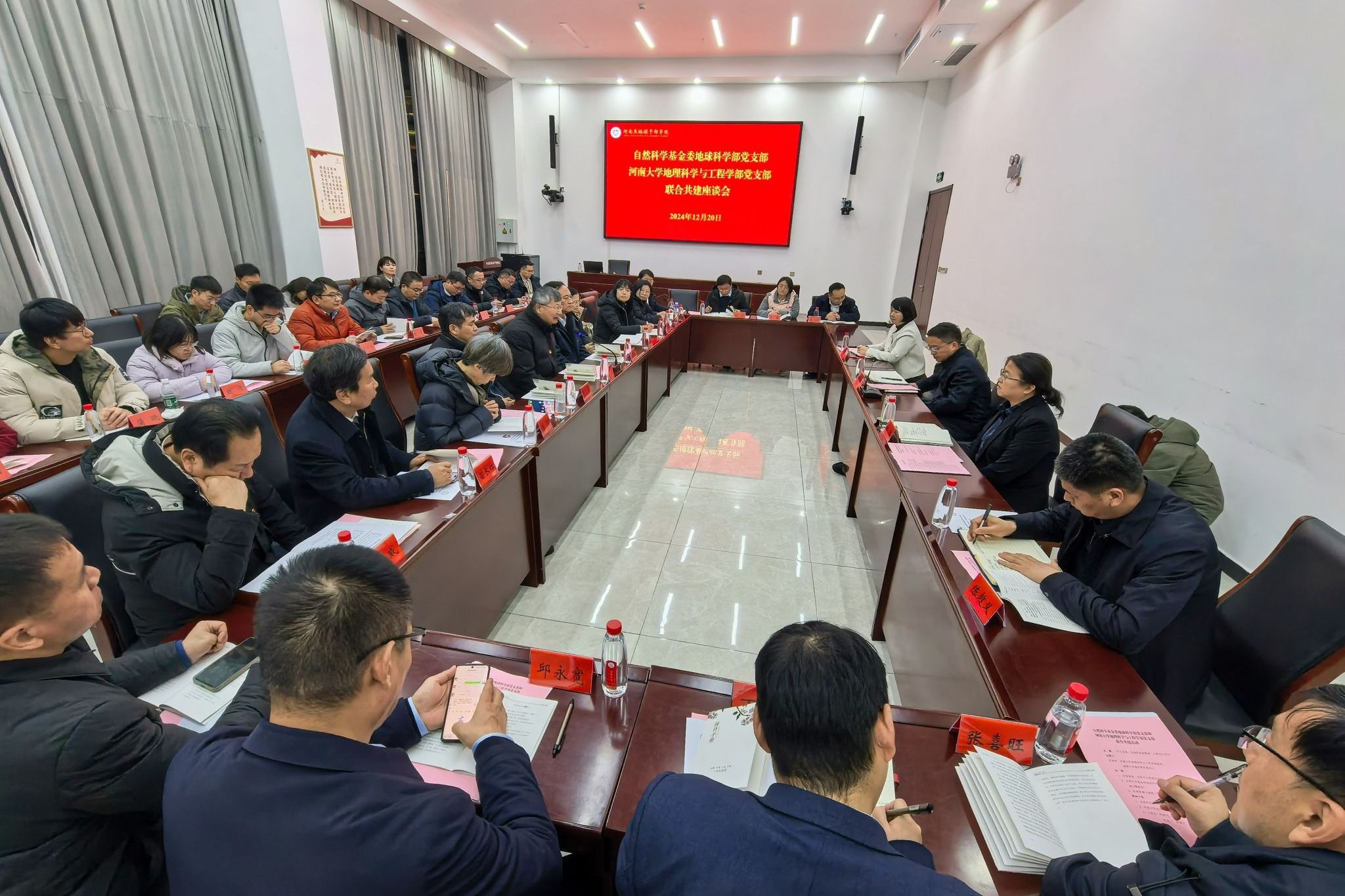 先后进行了沉浸式党课观摩学习和联学共建座谈会。沉浸式党课《您好,焦裕禄》,通过现代化的技术手段,让大家更直观地了解焦裕禄同志的生平事迹和无私奉献精神。随后,全体党员在第二教学楼一号教室举行联学共建座谈会。座谈会由河南大学地理科学与工程学部乔家君书记主持。