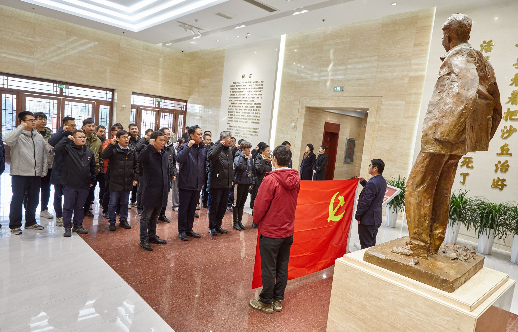 12月21日上午,全体党员步行前往参观习近平手植树,至焦桐广场聆听焦桐故事,在庄严肃穆的焦裕禄纪念园内,全体成员重温入党誓词,誓言以实际行动践行党的宗旨。随后,大家前往兰考县智慧岛,依次参观了国家乡村振兴(兰考)研究院展厅、无废城市展厅、智慧岛展厅以及乡村振兴5G+智慧农业展厅。